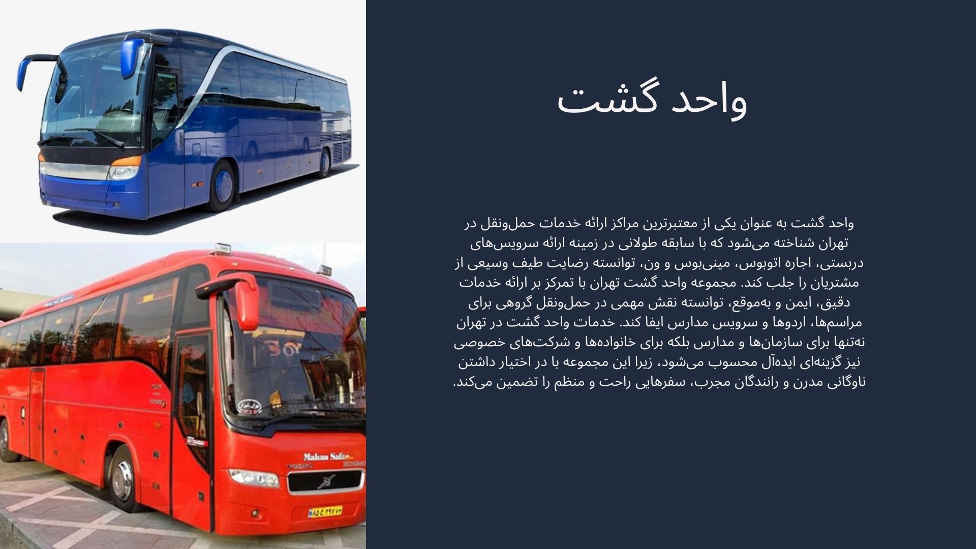 قابلیت ارائه انواع مختلف وسایل نقلیه برای نیازهای متنوع (اتوبوس، مینی‌بوس، ون)